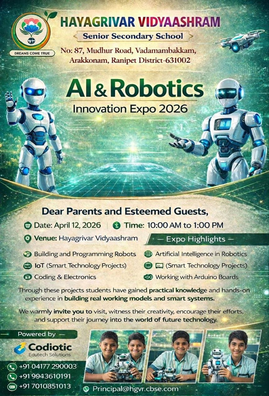 Hayagrivar is one of the best schools in Arakkonam. The school was founded in the year 2017 by Mr.K.Ravindiran, M.D and Mrs.Santhi Ravindiran, Principal with the similar intention of creating an 100% educated society. Hayagrivar Vidyaashram is an unit of well-known Sri Ramanar Vidyalaya (Matric syllabus) and it is managed by Ramana Maharishi Educational & Charitable Trust (Regd). Hayagrivar Vidyaashram is a holistic school located in Vadamampakkam village near Arakkonam town and it pursues CBSE curriculum to shape wards to compete for the emulating education system.